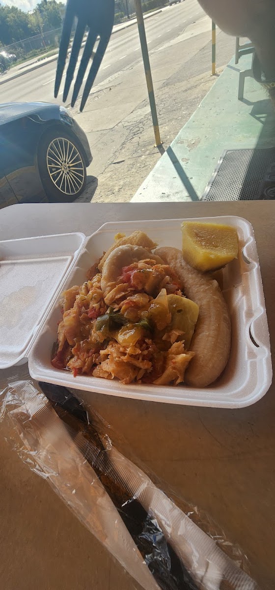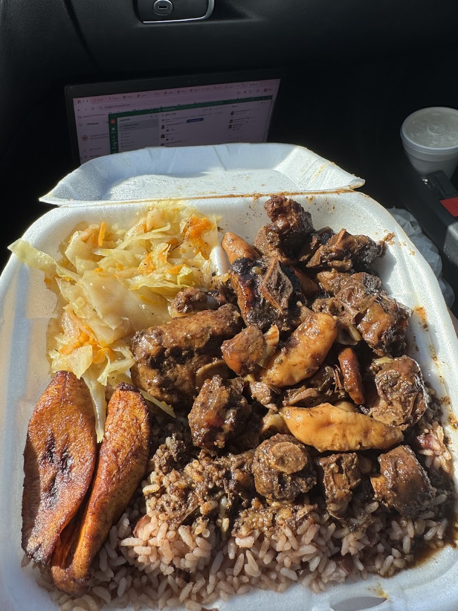 Always drive by but today I Stopped for lunch and got curry goat medium size and the portion was good I couldnt eat it all at once. It was full of flavor and tasted fresh. I also had their pine and ginger drink which was amazing so refreshing. I can’t wait to go back